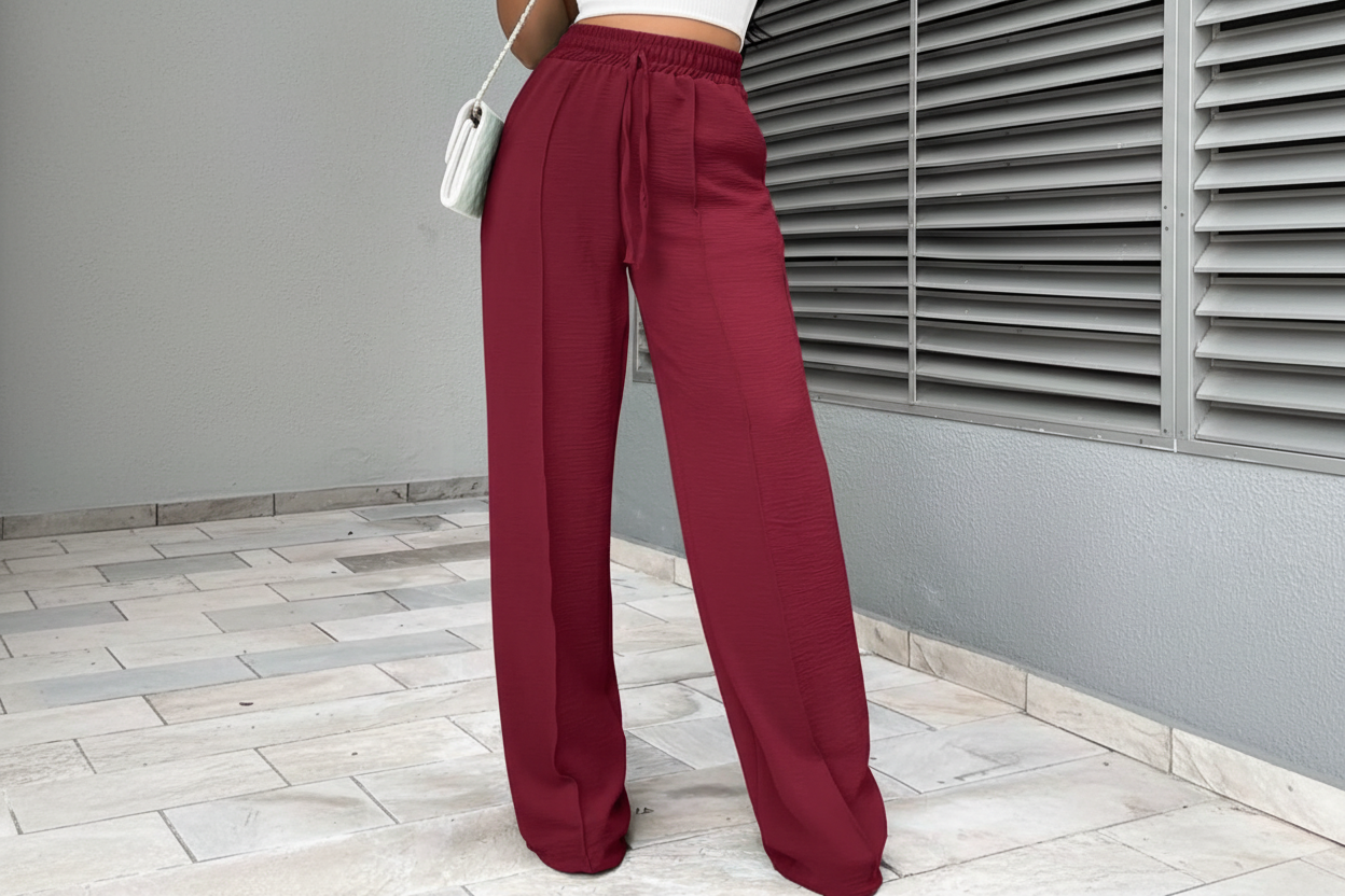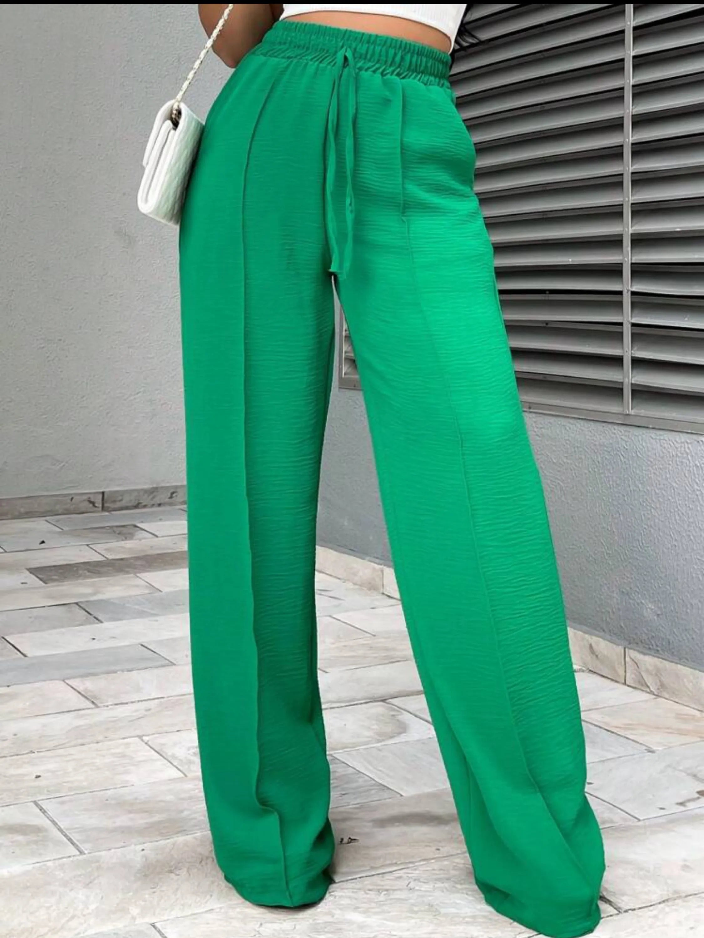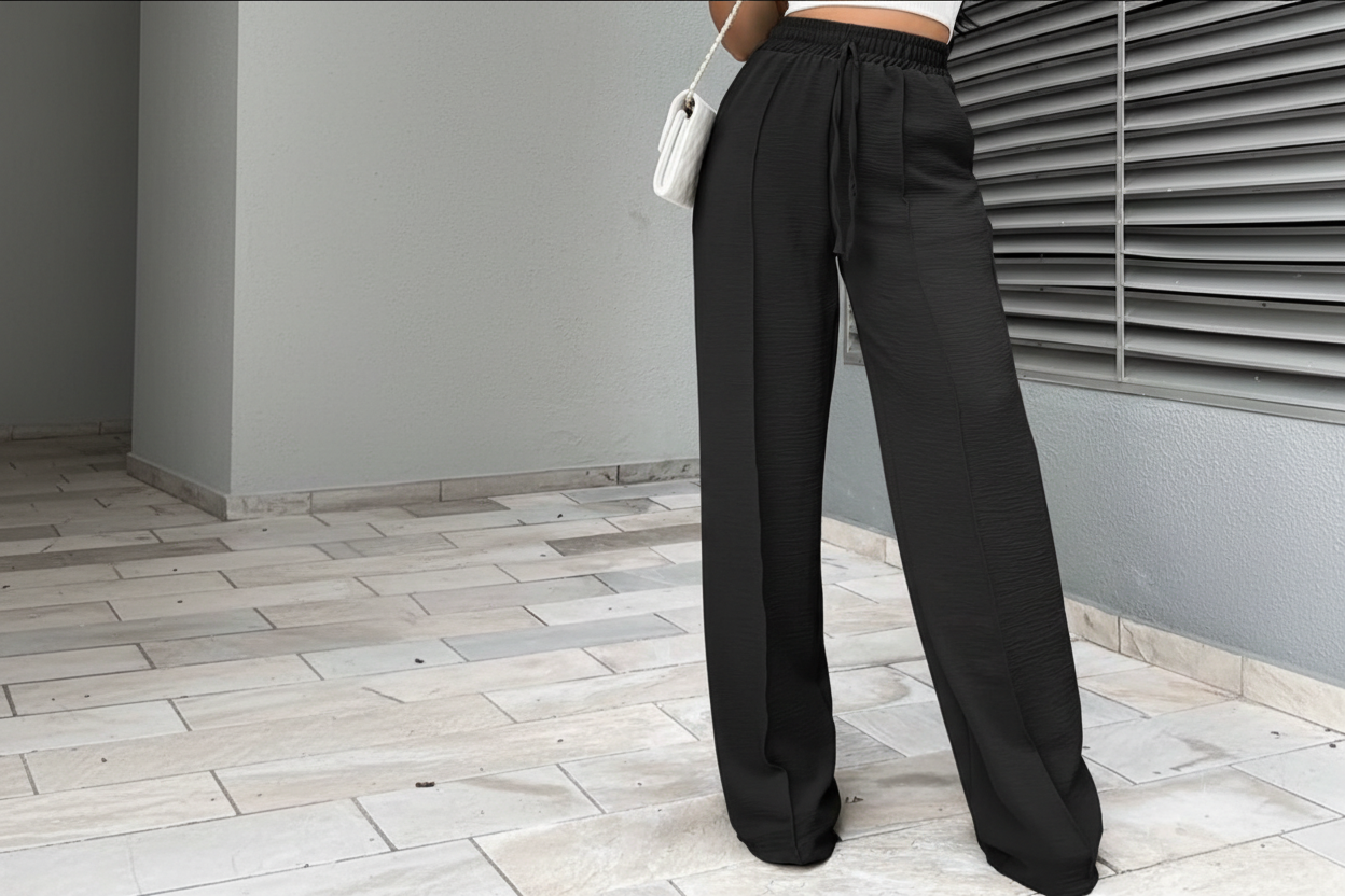 Calça Feminina Pantalona Duna Cintura Elástica Com Bolso Cintura Alta 508
