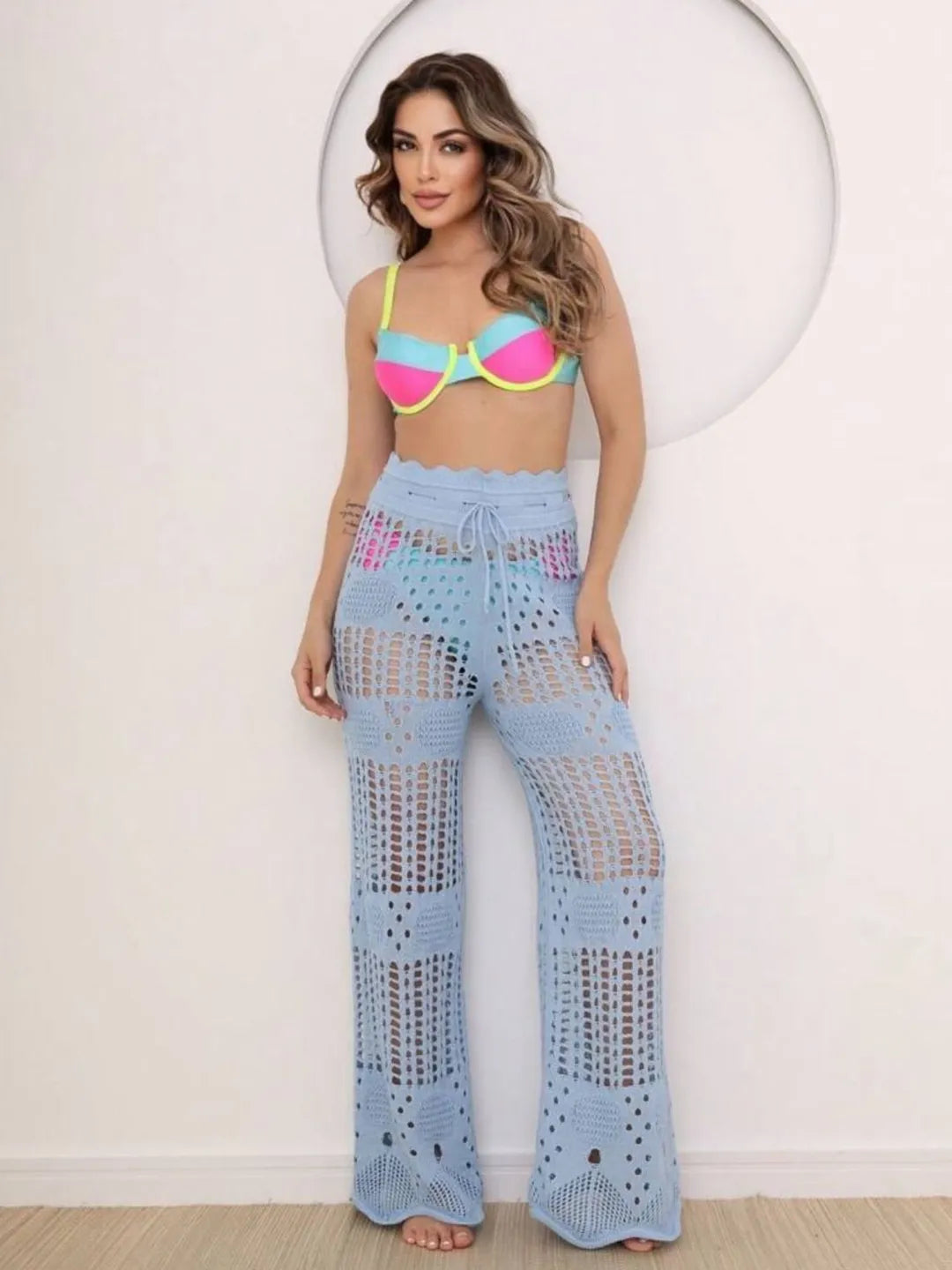 Seja estiloso na praia com nossa calça de tricô. Confortável, resistente e perfeita para curtir o sol sem preocupações. (Não...