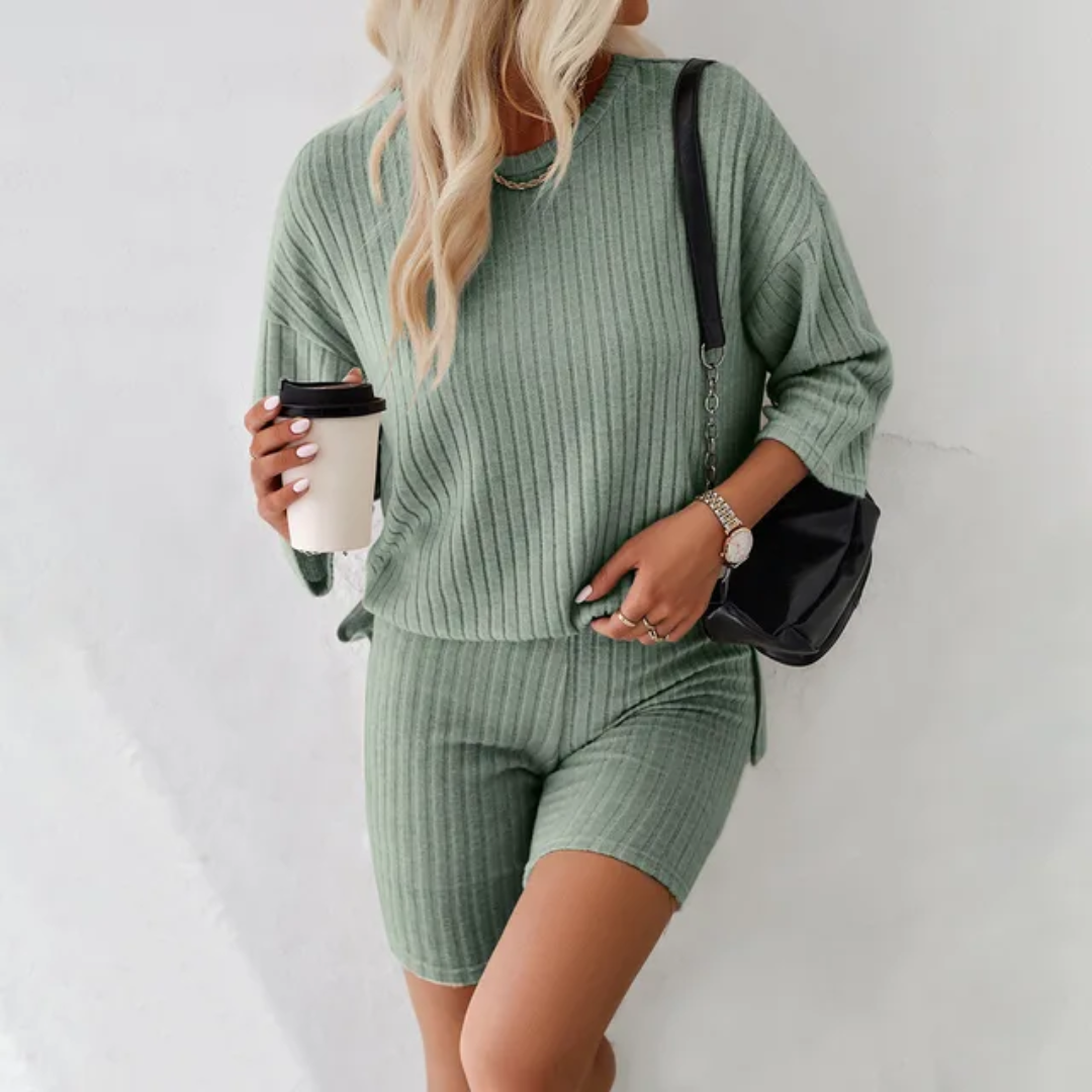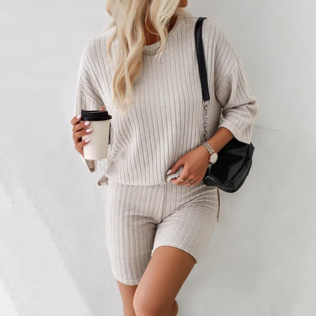 A camiseta ombro caído e os shorts de motociclista são a combinação perfeita de conforto e estilo. Com ombros caídos e cintura alta, proporcionam um visual moderno e descontraído. O tecido de alta qualidade garante durabilidade e maciez, tornando-os ideais para qualquer ocasião.