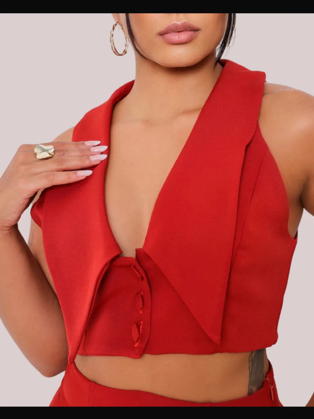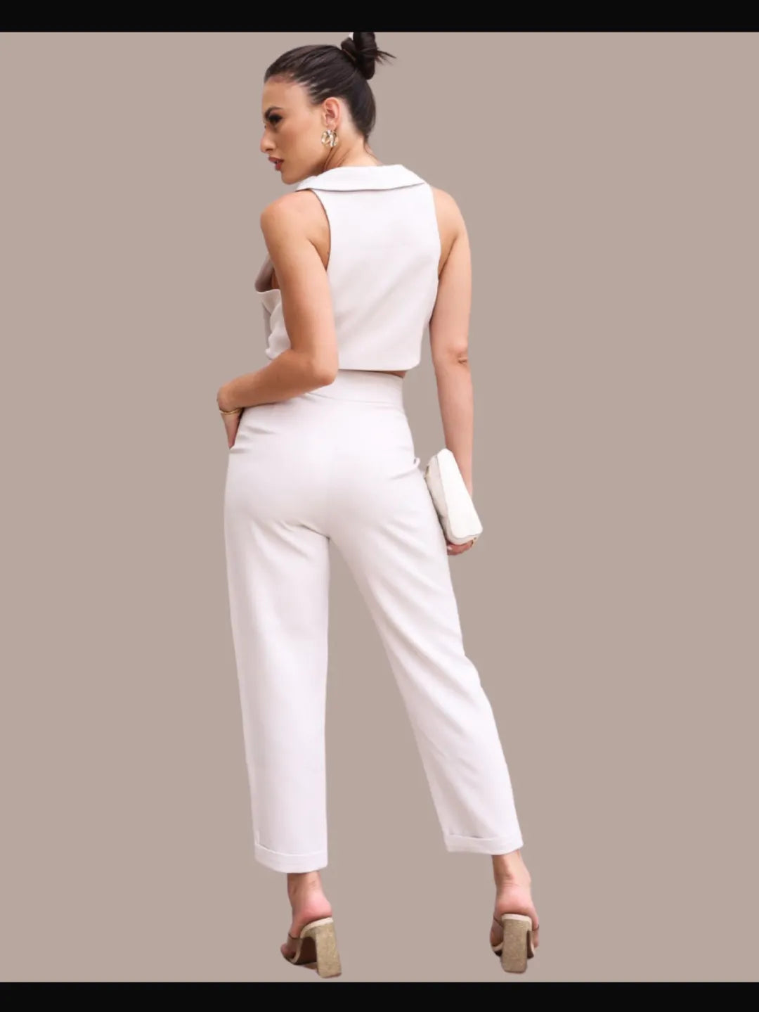 Este conjunto de colete e calça em alfaiataria é perfeito para quem busca elegância e sofisticação. Feito com tecido de alta qualidade, o conjunto garante um caimento impecável e confortável. A alfaiataria clássica é ideal para ocasiões especiais e traz um toque de luxo ao visual.