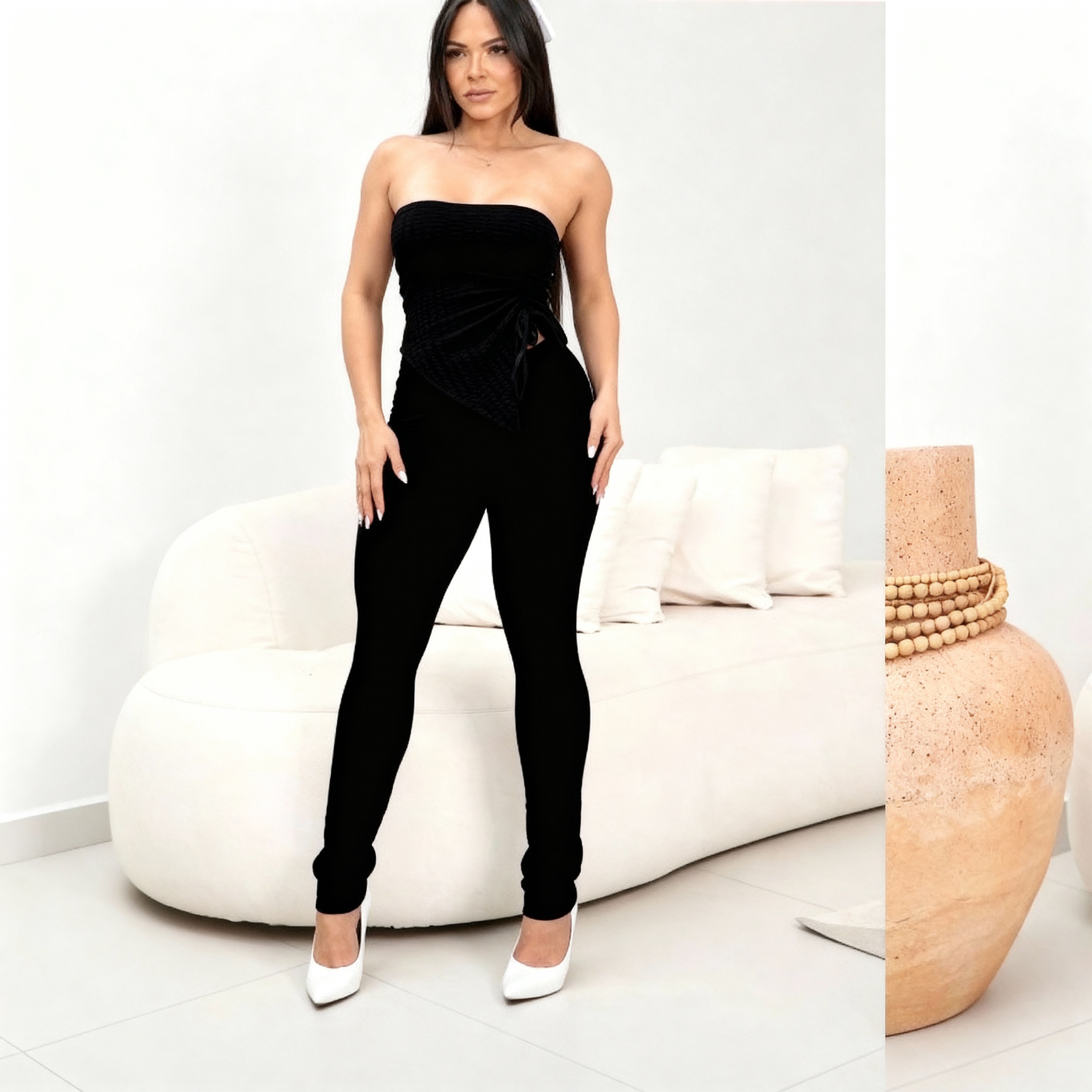 Transforme seu look com esse conjunto de calça e blusa tomara que caia com bojo. Perfeito para criar um visual...