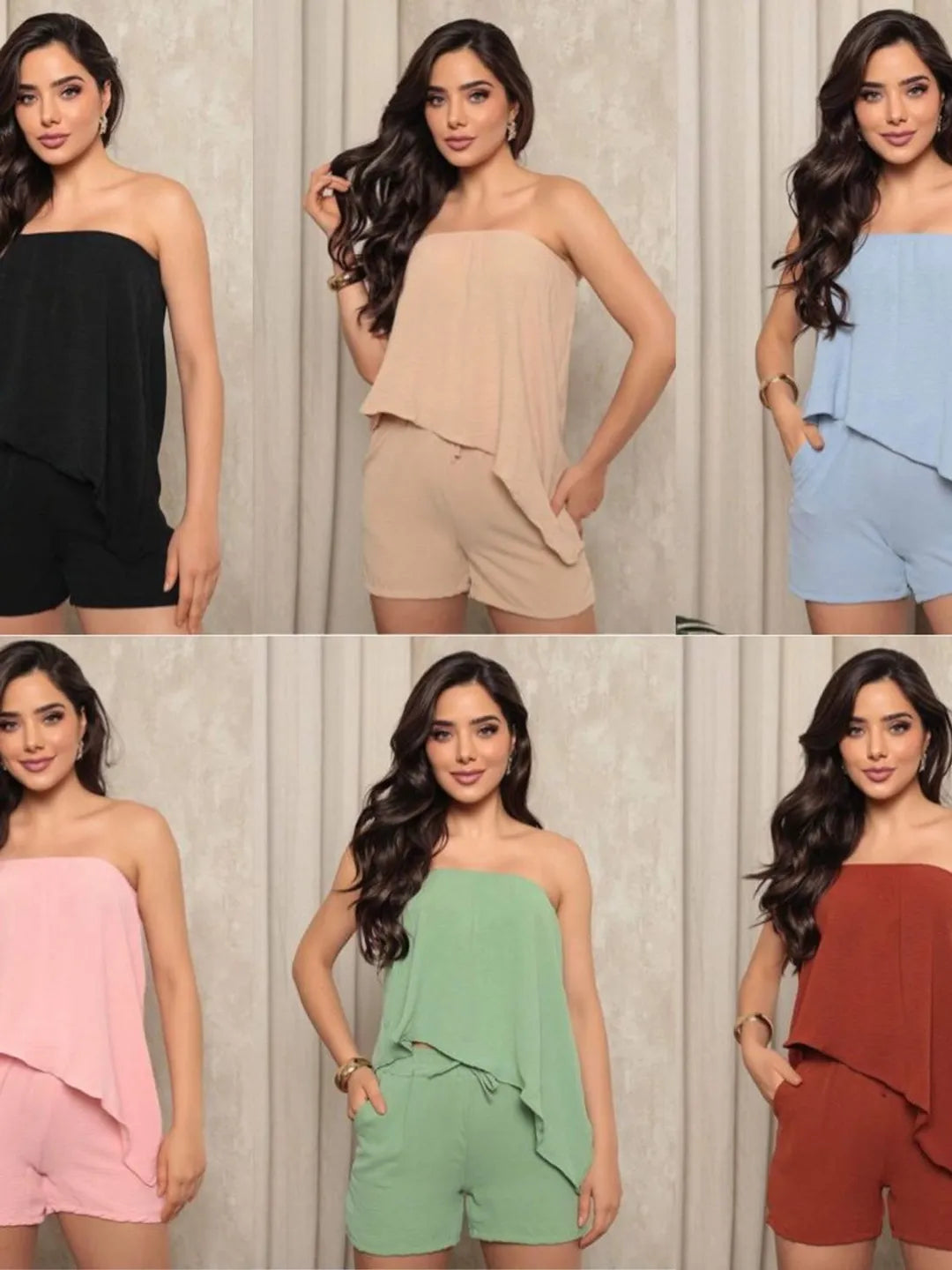 Desperte seu estilo neste conjunto de duas peças de verão para mulheres! Com um top tubo elegante em uma cor sólida e um par de shorts combinando, essa peça é perfeita para dias ensolarados e quentes. Mostre suas curvas e sinta-se confiante e confortável em qualquer ocasião.