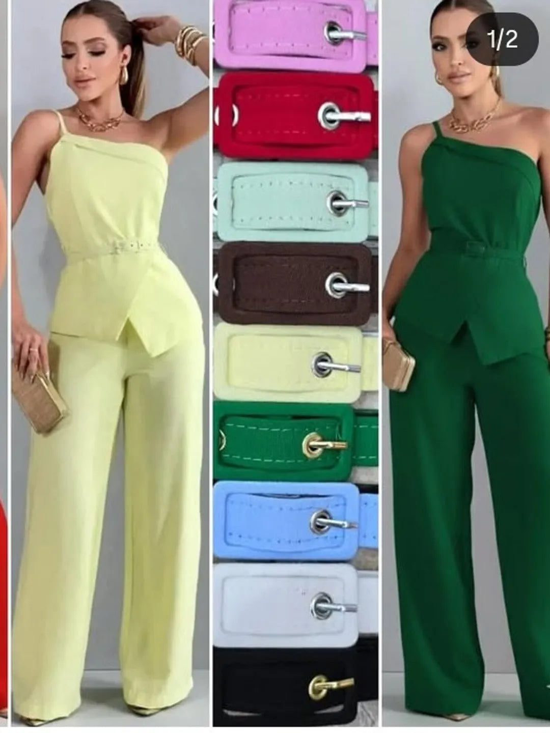 Conjunto Feminino Blusa 1 ombro Assimetrica e calça Pantalona Com cinto 326