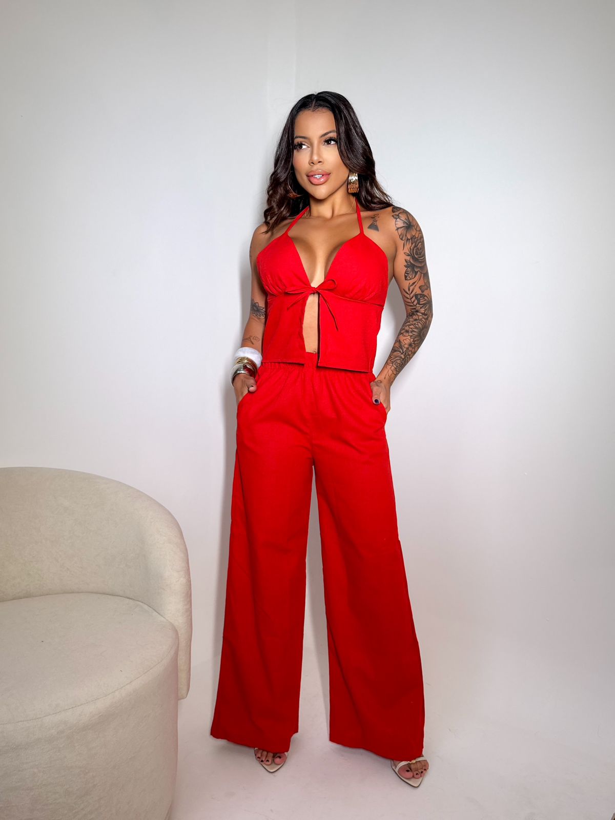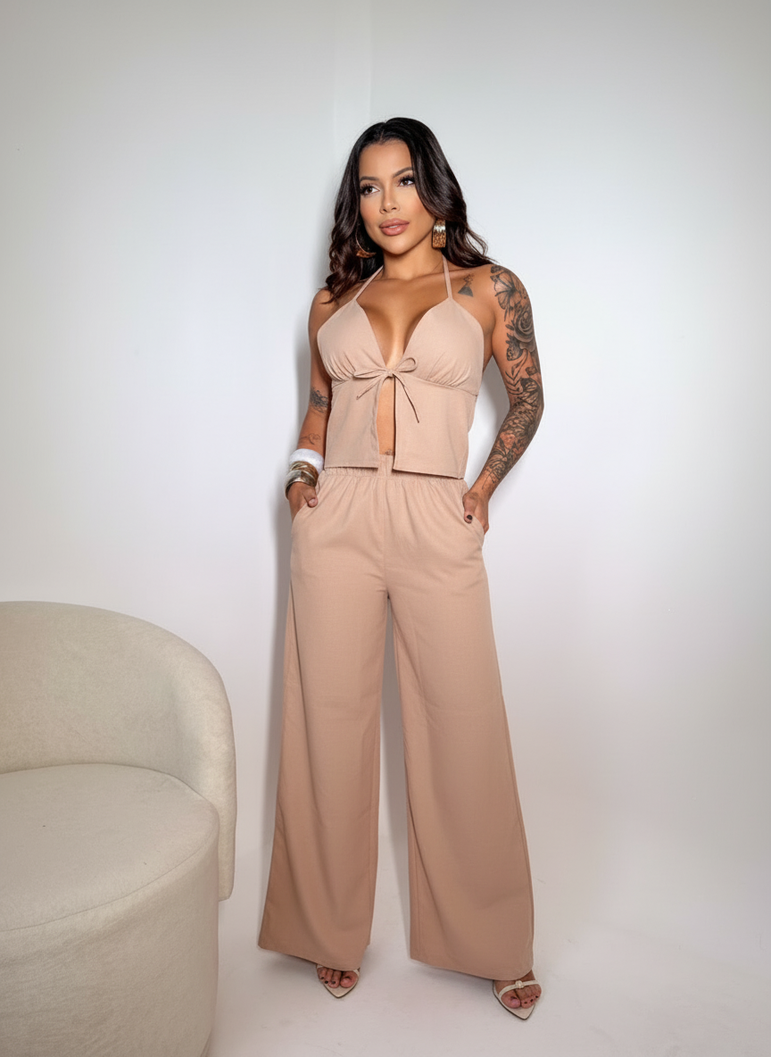 Conjunto Feminino em Ribaninha– Blusa com Alça e Calça Pantalona | Look Confortável e Estiloso Verão 293
