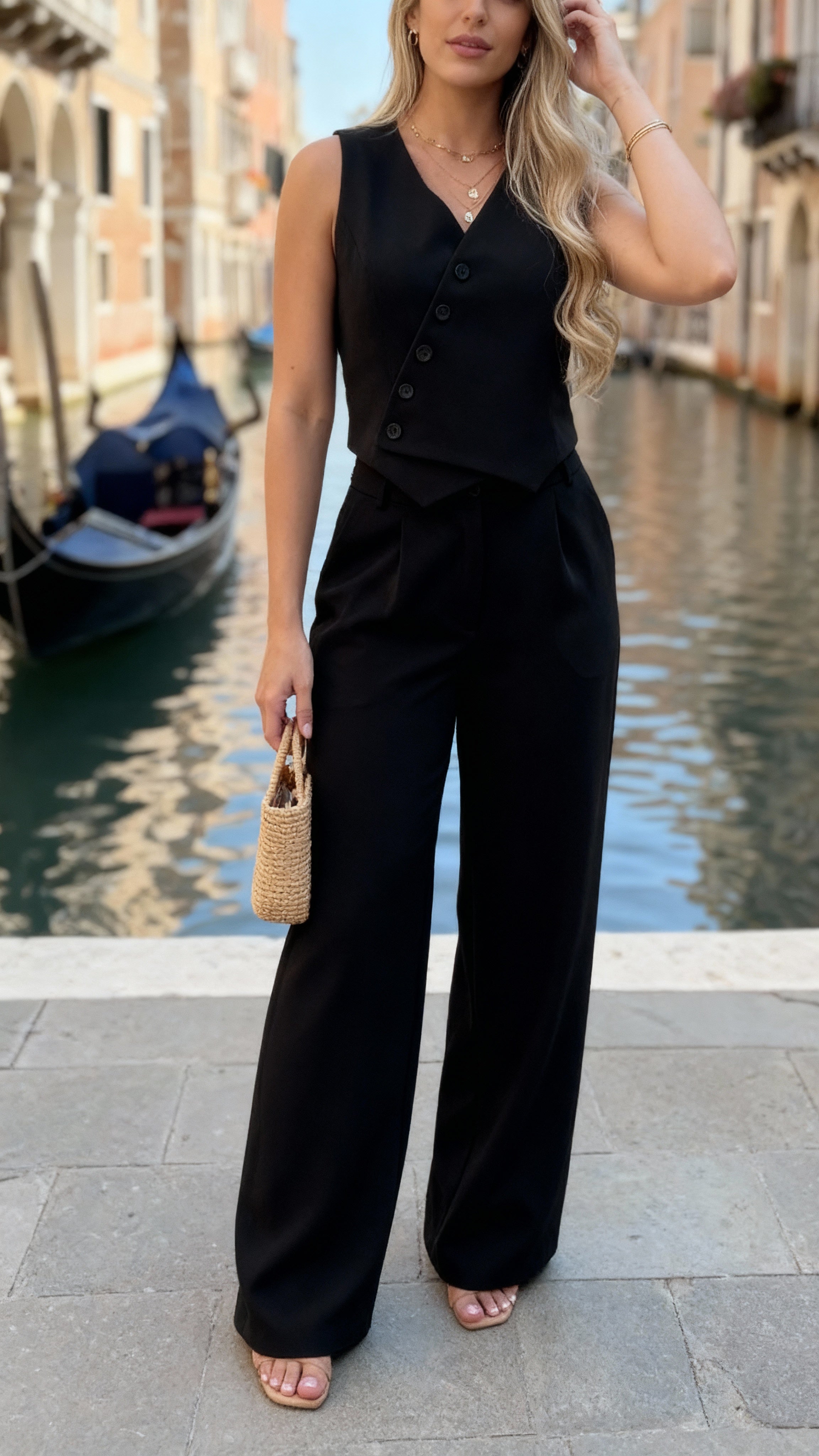 ✨ Conjunto Feminino de Duas Peças: Colete com Gola Halter e Calça Longa Eleve o seu estilo com este conjunto...
