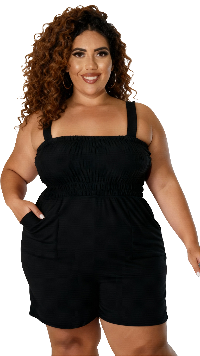 Vista-se com estilo e conforto com nosso macacão casual plus size! Possui bolsos práticos para guardar seus pertences e um shorts integrado para maior comodidade. Dê um toque divertido ao seu guarda-roupa com este macacão único (e super prático)!!