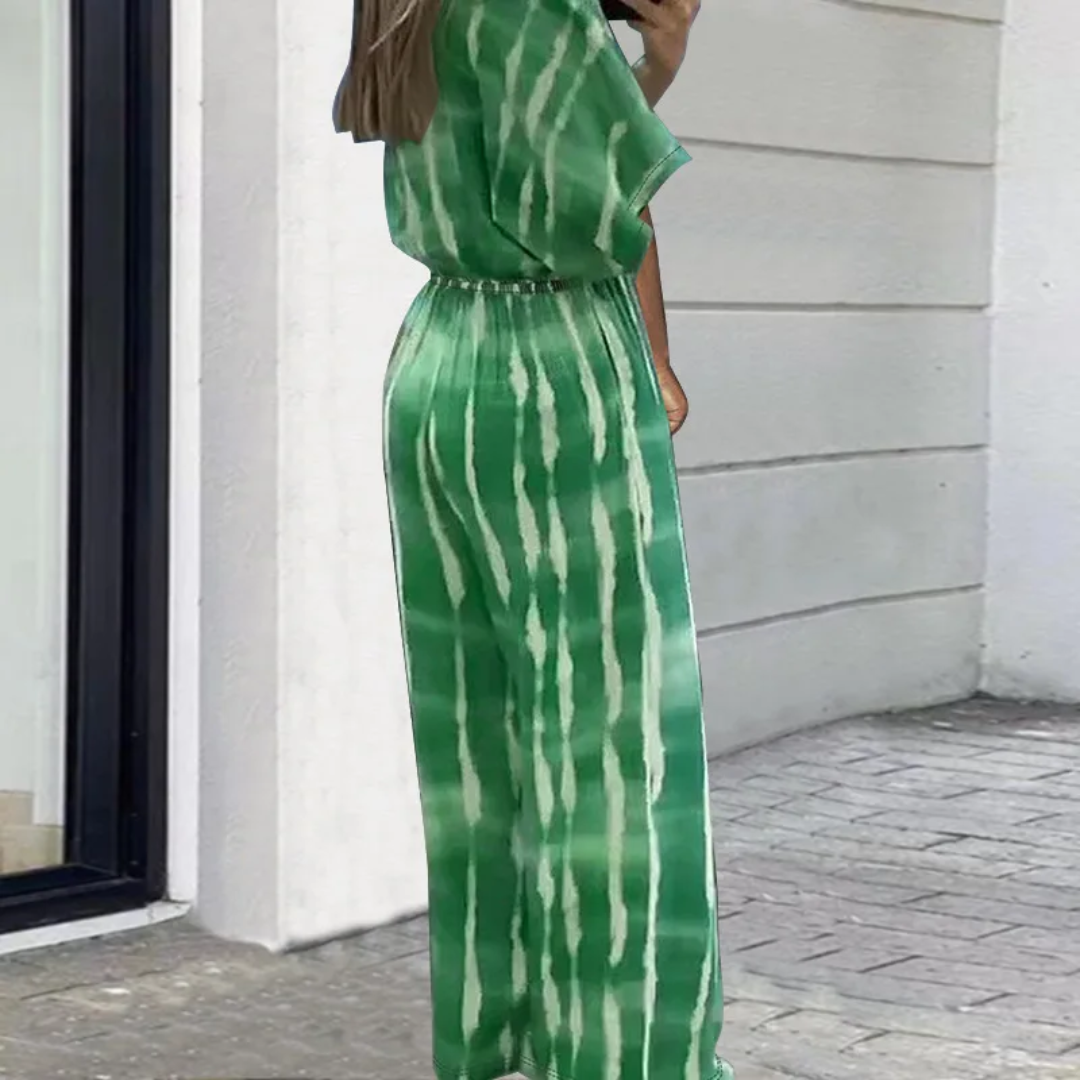 Macacão com decote em V, mangas médias e cintura elástica. 223