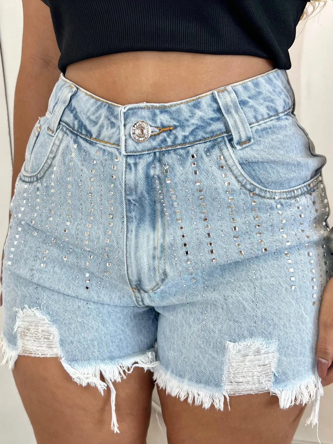 Transforme seu look com estilo e atitude com o nosso Short jeans brilho rasgada! Com um toque de brilho e...