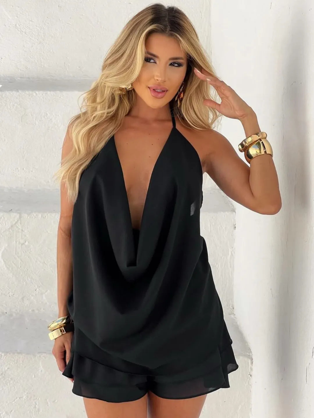"O Macaquinho Livia Helena é a peça essencial para um guarda-roupa refinado. Sua gola alta e alças finas adicionam um toque elegante, enquanto sua versatilidade permite usá-lo para qualquer ocasião. Feito com materiais de alta qualidade, este macaquinho é perfeito para mulheres que valorizam o luxo e exclusividade."