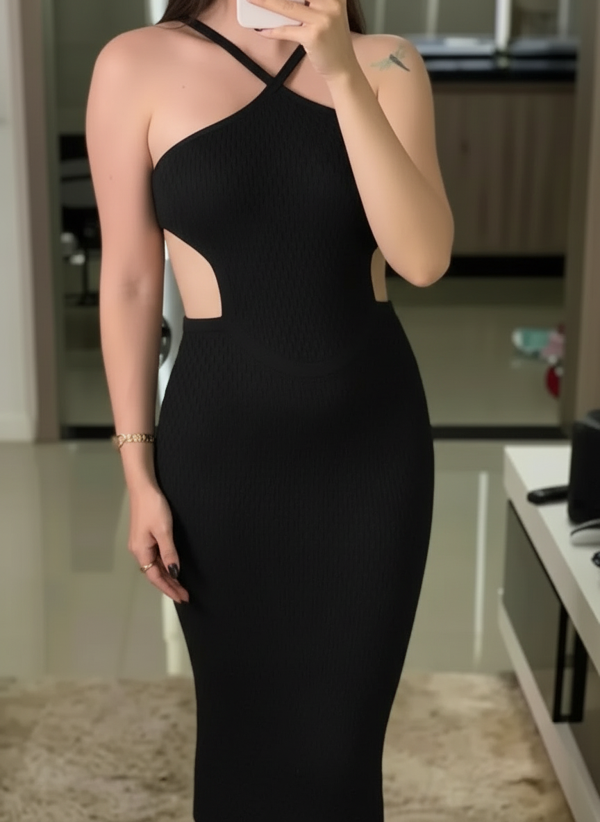 Vestido Frente Única Curto Trico Modal Premium Com Amarração 472