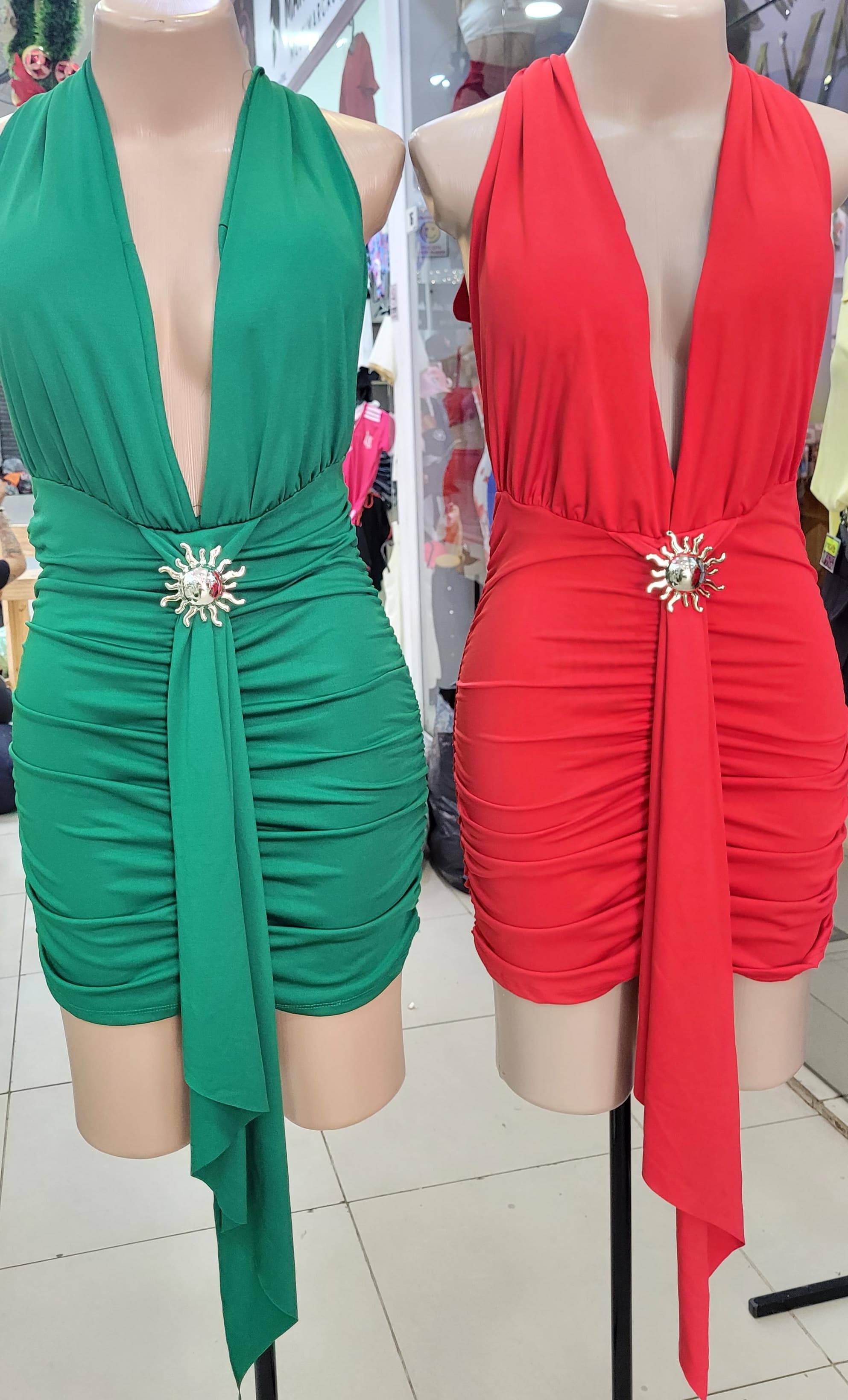 Vestido Solari Curto, Drapeado. Costas Nua, Frente Única 448