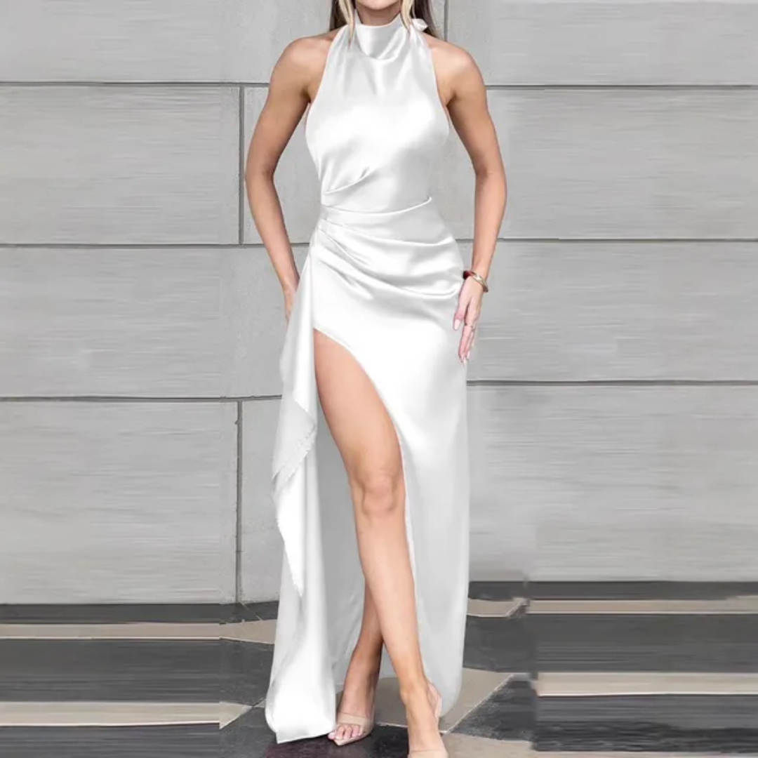 Sinta-se confiante e glamorosa neste vestido tubinho com decote profundo e bainha dividida. Sem mangas, ele é perfeito para uma...